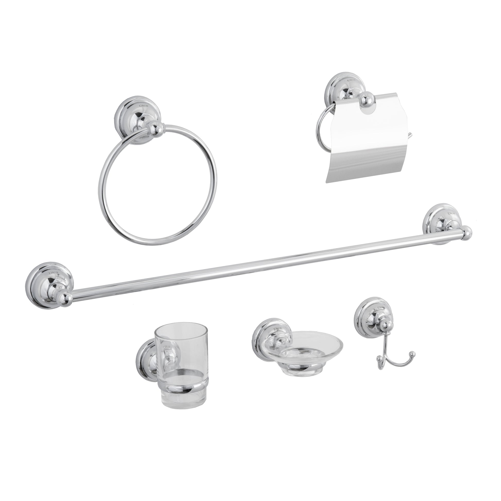 Juego de Accesorios para Baño Dica 2600 Cromo. Juego de accesorios de 6 piezas
