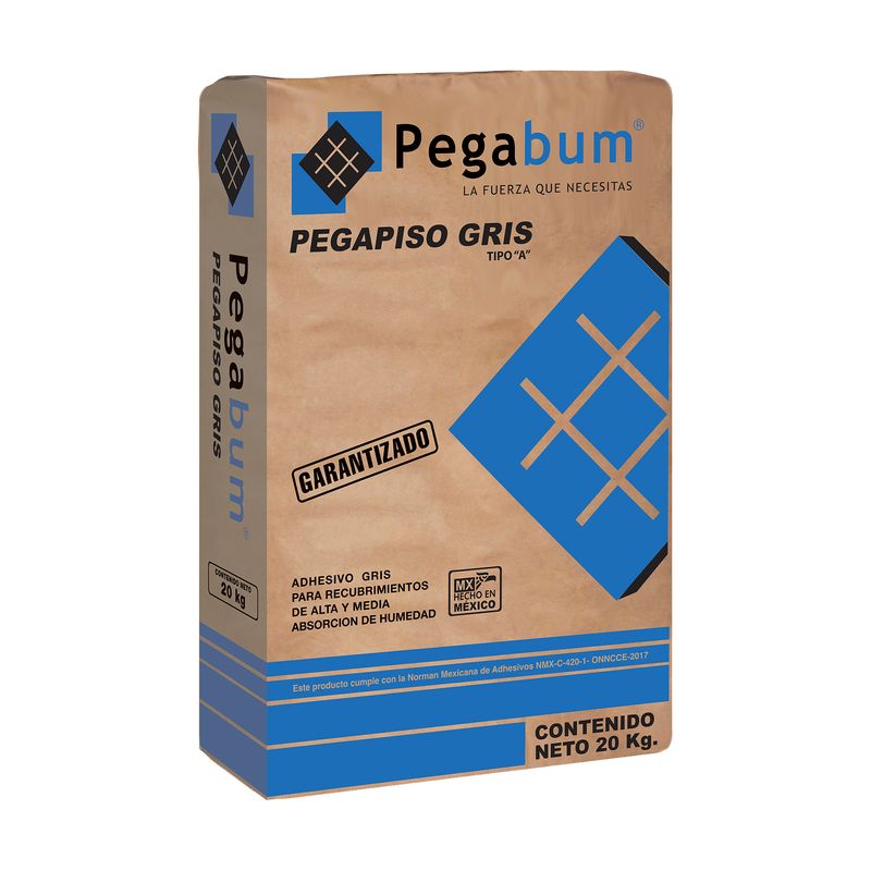El adhesivo de la marca Pegabum, modelo Pegazulejo, lo encuentras en una presentación de 20 kg. Su tipo de adherencia Mecánica lo convierte en el complemento ideal para la colocación de tu recubrimiento de preferencia. Ya sea para pisos y muros cerámicos, porcelanatos, piedra, vitroblock, azulejo veneciano, tenemos el ideal para ti Pegabum pegazulejo adhesivo en polvo, de color gris, formulado con cemento de alta resistencia, cargas minerales seleccionadas y aditivos químicos