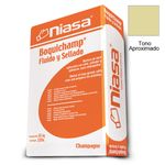 La Boquilla / Junta de la marca Niasa, modelo Boquichamp ultrafino porcelánico, color Champagne viene en una presentación de 10 kg. Emboquillador con propiedades de fluidez y manejabilidad para juntas de 3 mm a 20 mm ya sean de cerámica, barro, mármol, acabados vidriados, etc. Retarda la absorción de líquidos así como el desarrollo de hongos y bacterias en las juntas o boquillas